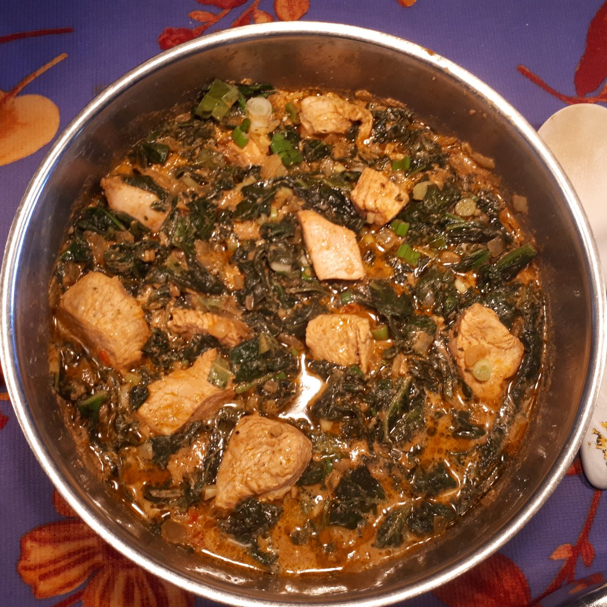 Here is some palak murgh (Indian spinach chicken curry) I made today:
