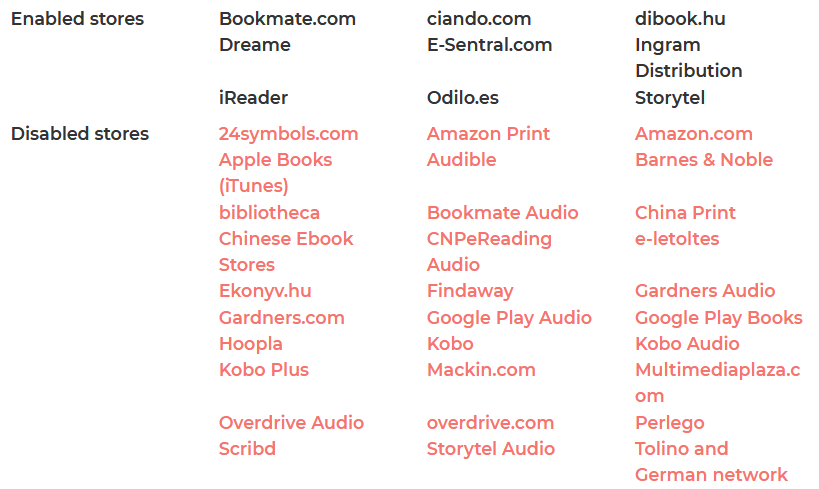 There are a few outlets I'm not in, so I'd need to do a little research to see if it was worth it or not. Just looking at that list, I'm note sure it would be worth doing the time to upload, unless some of those markets are secret gold mines. I'm already direct through Ingram, not sure I have much marketability in Hungary or Spain. So that leaves Bookmate, Dreame, E-Sentral, Ciandro, iReader, and Storytel.