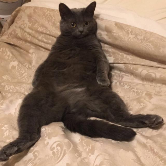 [Poor little thing weighed 8 pounds, but now he weighs 13 pounds, has gotten taller and longer, and has outgrown two beds, his carrier and his crate. He's such a little lover and my grandson (who lives with me) and I find ourselves smiling all the time when we're around him.