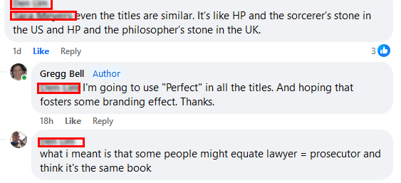 The first book is titled The Perfect Lawyer and the sequel is The Perfect Prosecutor. I never considered them being too close until this: